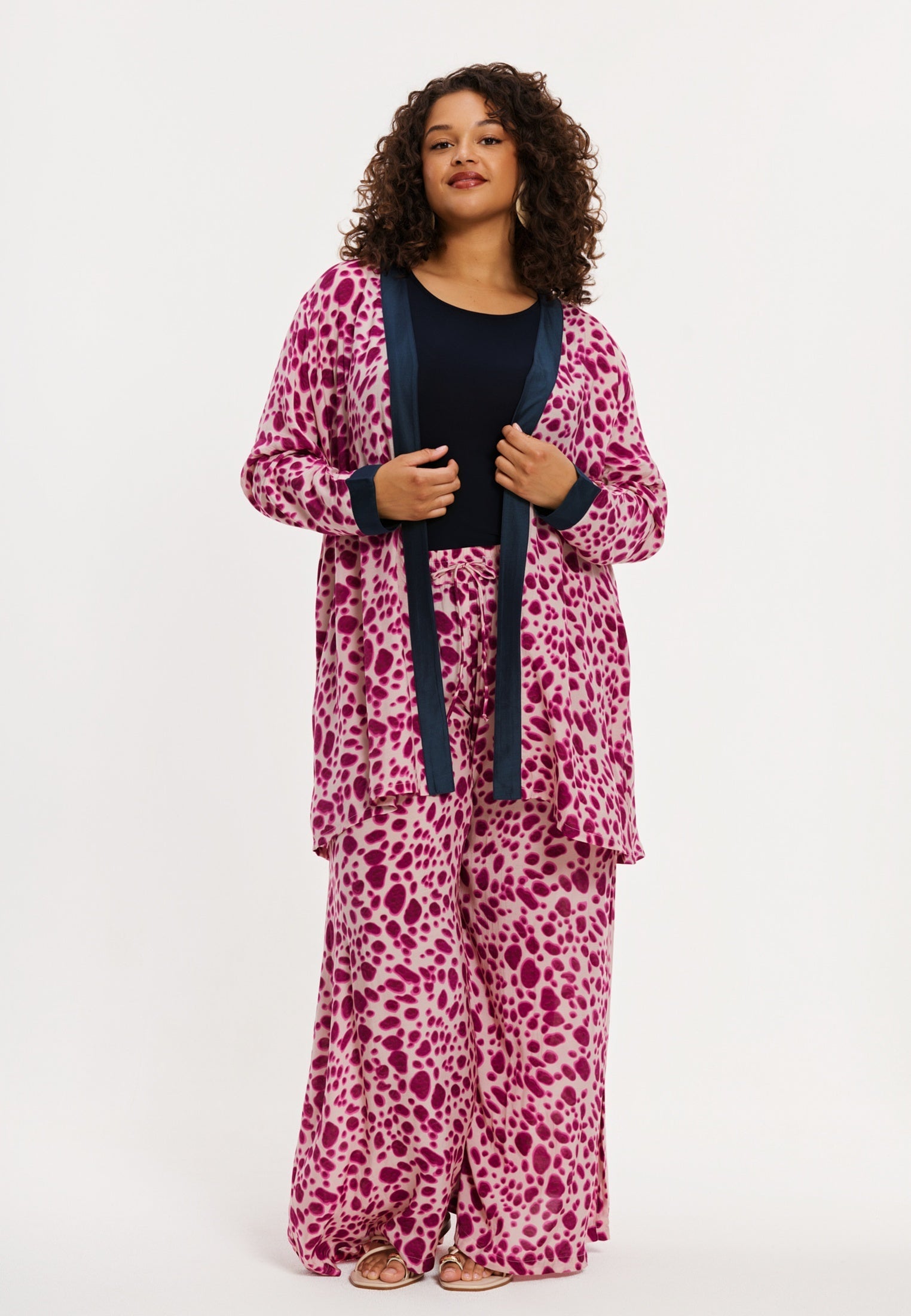 Super elegant and almost like wearing a maxi skirt, these wide-leg trousers come in a striking fuchsia print. Crafted from soft viscose, they feel airy and move beautifully with you. Finished with an elastic waistband and drawstring. Pair them with a simple top, or make a true fashion statement by choosing one of the matching printed items!