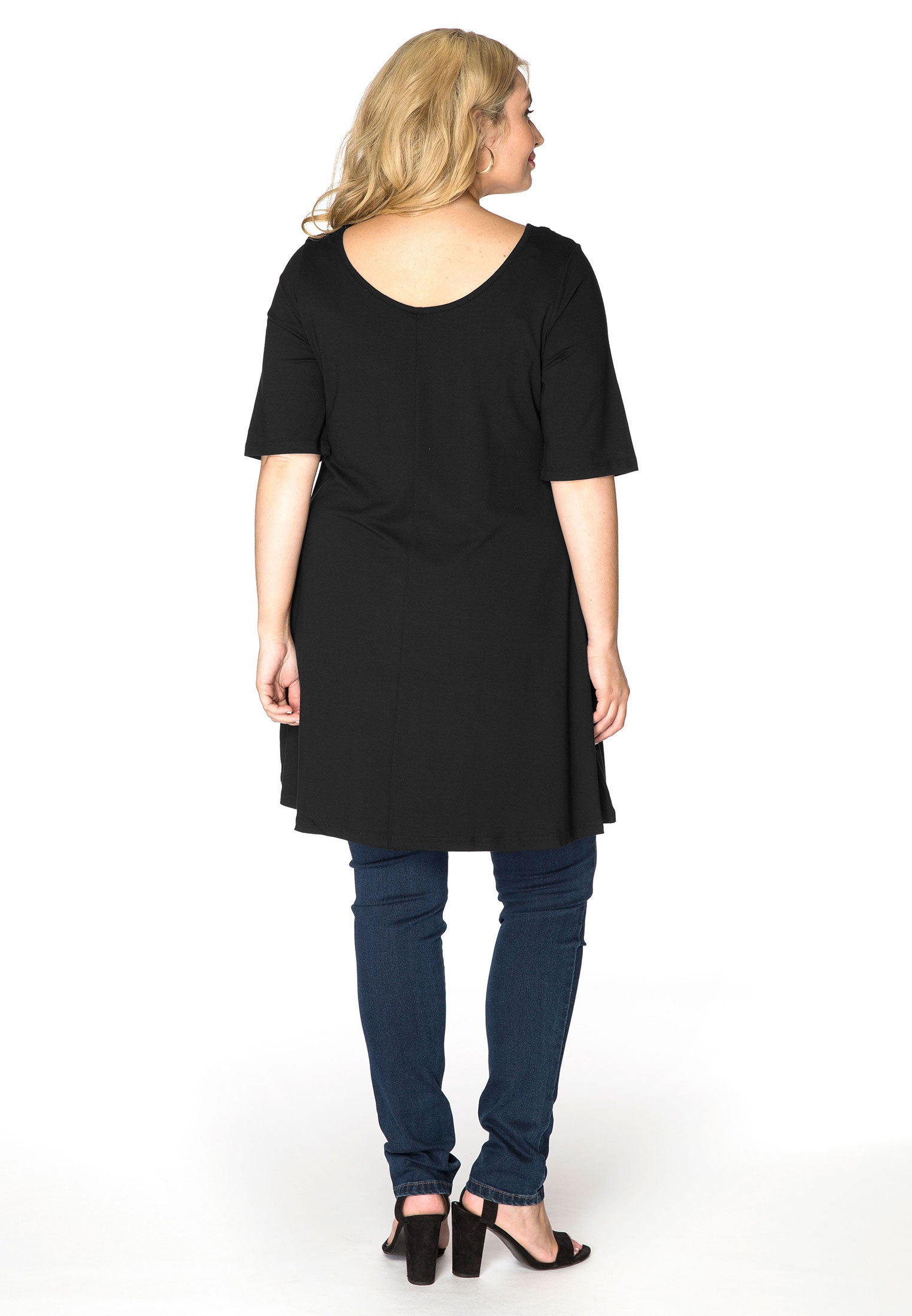 Basic T-shirt in white, black and navy. The T-shirt has a round neck, three-quarter length sleeves and wide bottom fitted. Every wardrobe requires a basic T-shirt like this one.